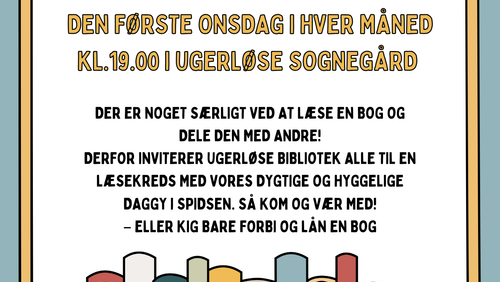 Der er noget særligt ved at læse en bog og dele den med andre – derfor inviterer Ugerløse Bibliotek alle til en læsekreds med vores dygtige og hyggelige Daggi i spidsen. Kom og vær med – eller kig bare forbi og lån en bog, når det passer dig!